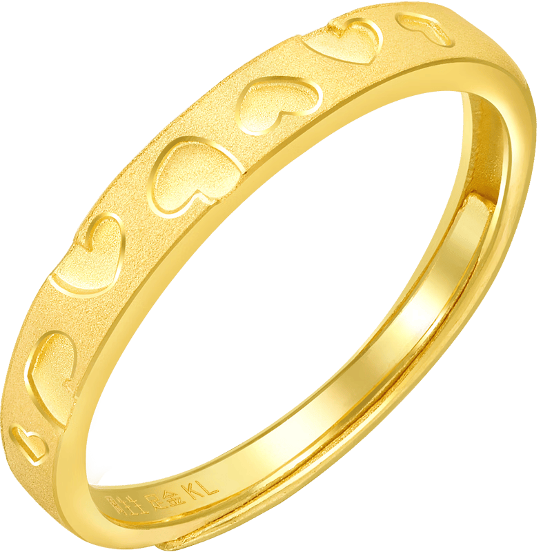 这款黄金戒指的设计理念深深植根于对爱情的理解。戒指的表面以爱心元素点缀,仿佛在诉说着每一段动人的爱情故事。它不仅仅是一件首饰,更是佩戴者心中爱的象征,时刻提醒着我们珍惜身边的人。