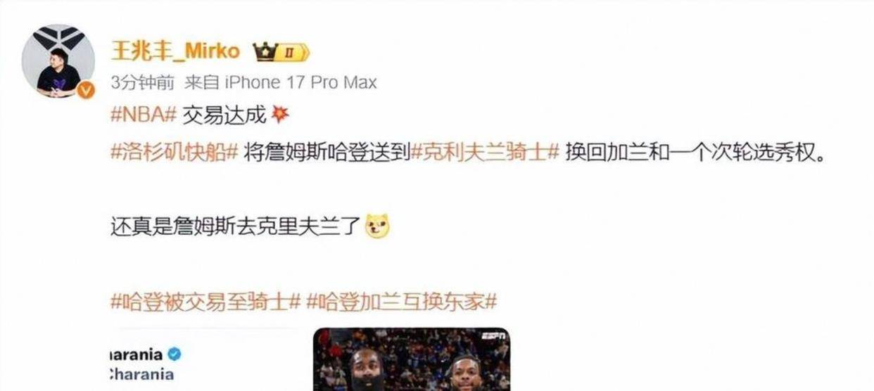 私生活也被炒得凶,哈登是两个孩子的爸,儿子杰斯他宠得不行,最近又和女友生女儿,情人节送车挺浪漫。可这些一放大,就有人酸说他全明星替补都不是还秀恩爱。其实这是老套路转移焦点。真正该看的是他在场上变身:从以前得分王,到现在组织大脑。他自己说过,忠诚在NBA被高估了,球员换队正常。这话现实,骑士球迷现在开心因为赢球,但季后赛要是再栽,那些老梗还会回来。