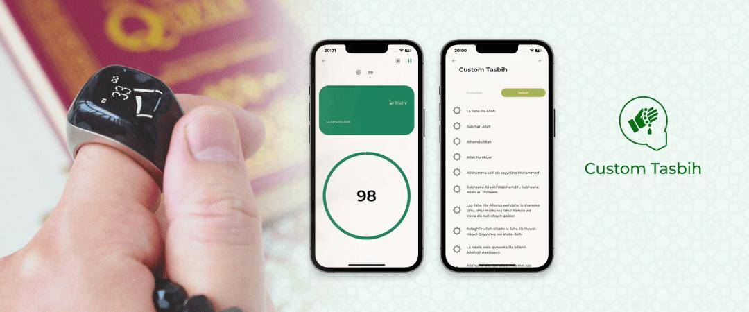 传统的计数方式往往依赖物理念珠或机械计数器,难以记录复杂的修行计划。Custom Tasbih功能允许用户在App中根据个人或导师的建议,灵活设定不同经文的计数目标,当用户通过戒指上的物理按键完成预设目标时,硬件会通过特定的震动频率进行反馈。这种逻辑将模糊的修行转化为精确的进度管理,让每一次按压都成为可感知的精神积累。