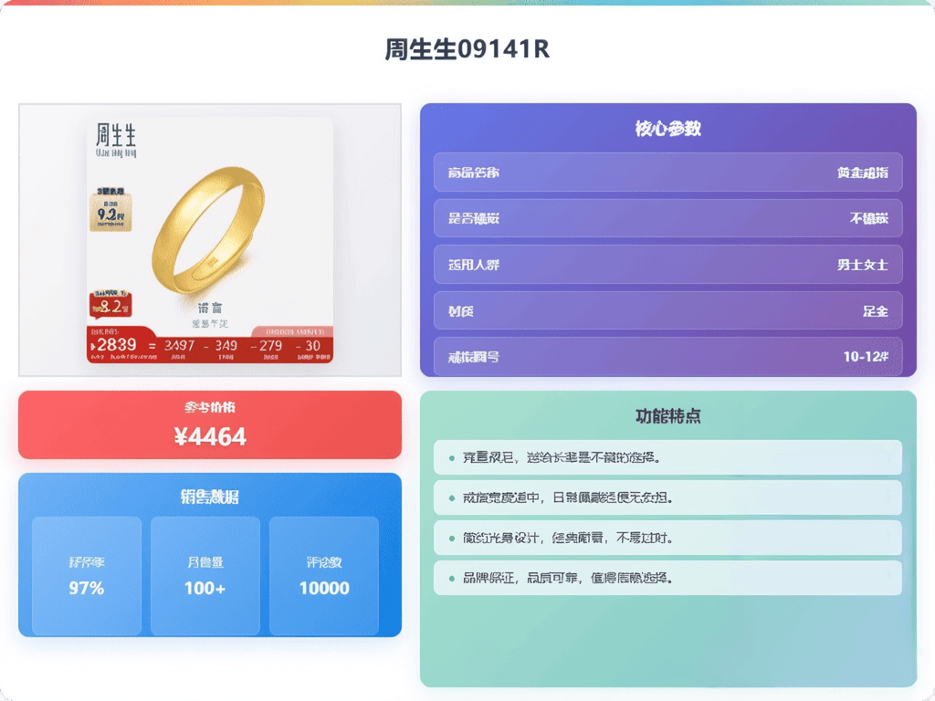 推荐理由:这款黄金戒指采用足金999材质,保证了高纯度和自然光泽,佩戴起来确实亮眼又有质感。它的颜色非常自然,能散发出淡淡的黄金光泽,看上去挺有档次。