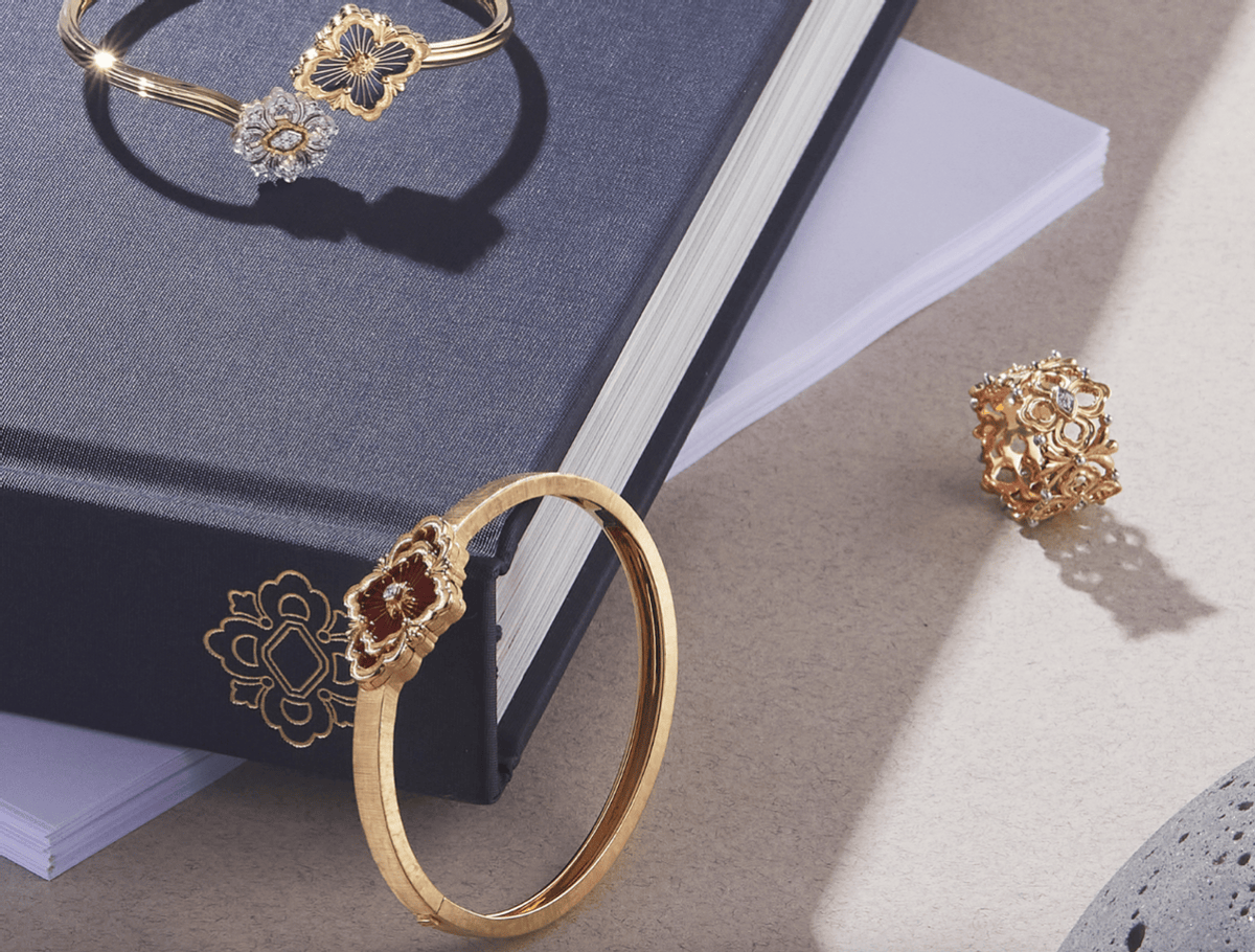 布契拉提是结婚对戒品牌排行榜中的佼佼者,创立于1919年,品牌将文艺复兴时期的雕刻技法与珠宝设计相结合,打造出蕾丝般细腻轻盈的金属质感,宛如艺术品般精致优雅。布契拉提的对戒常采用独特的雕刻工艺,在戒指表面勾勒出如丝绸般柔和的纹理,搭配黄金或铂金材质,呈现出华贵而典雅的质感。