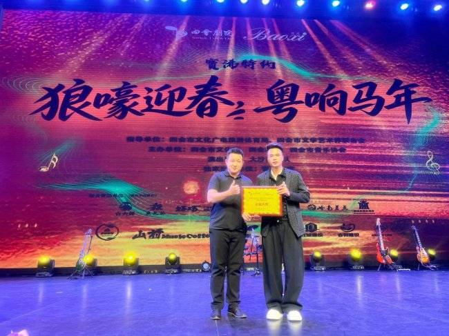 演出步入尾声,四会剧院特别向宝浠珠宝董事长陆鹏毅先生授予 “文化公益大使” 荣誉牌匾,以此致敬其在推动本土文化发展与践行社会公益事业中的持续坚守与杰出贡献。接过牌匾的陆鹏毅,紧紧握着现场志愿者的手郑重承诺:“明年我们还要办,还要用宝浠的定制珠宝帮更多人,用歌声唱更多心里的话。” 夜色中,剧院外的宝浠珠宝 LOGO 静静闪耀,那束光并非冰冷的商业符号,而是宝浠 “取之于民,用之于民” 的初心在熠熠生辉。演唱会虽已落幕,但旋律仍在心中回响,温情仍在城市蔓延;那些经典的粤语金曲,将陪伴人们走进更明媚的春天;这份由音乐联结的善意,将继续在这片土地上发光发热。