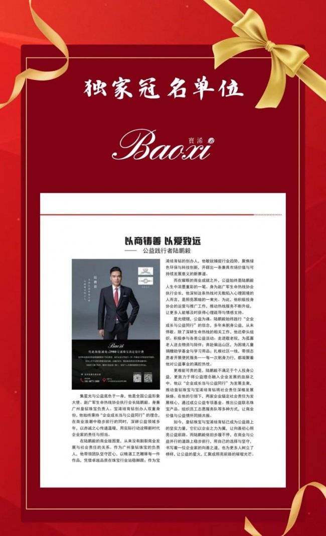 陆鹏毅让珠宝被赋予了温暖的灵魂,让歌声成为了传递爱的载体,引领宝浠珠宝走过十年,为爱启航。他以匠心独运的设计理念,将每一颗培育钻都赋予生命的温度,让珠宝不再只是装点生活的饰品,更是真挚情感的传递者;他以歌声为媒,将爱与希望播撒至每一个角落,让音乐成为连接心灵的桥梁,温暖人心,照亮前行的道路。 陆鹏毅所做的,从来都不是简单的珠宝生意,也并非一场普通的公益演出。他将社会给予宝浠的每一份认可,都化作滋养他人的养分;把对 “为民” 的坚守,悄悄藏进珠宝的璀璨光泽与歌声的温暖旋律里。当宝浠培育钻在阳光下闪耀,那是消费者的信任在发光;当粤语金曲的旋律在风中飘荡,那是民心的共鸣在回响。 这份超越商业与公益边界的坚守,印证了真正的企业力量:是 “取之于民” 时心怀敬畏,是 “用之于民” 时全力以赴。而真正的初心,是把社会给予的温暖,化作照亮更多人前路的光。这束光,会随着每一枚宝浠珠宝的定制、每一段公益歌声的传唱,在岁月里长明,在人心间扎根,让宝浠与陆鹏毅的 “为民” 故事,永远未完待续。返回搜狐,查看更多