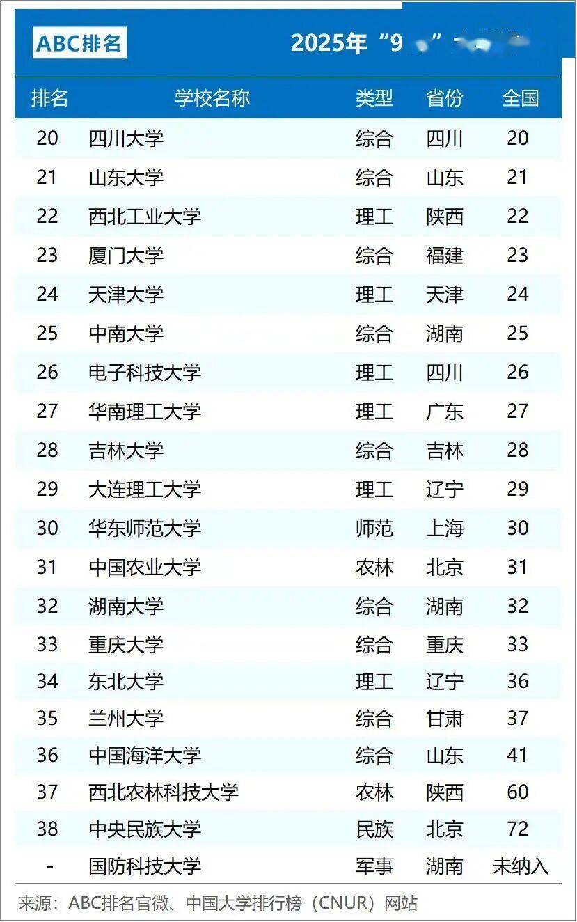 第17名是北京理工大学;第18名是北京师范大学;第19名是南开大学;第20名是四川大学;第21名是山东大学。