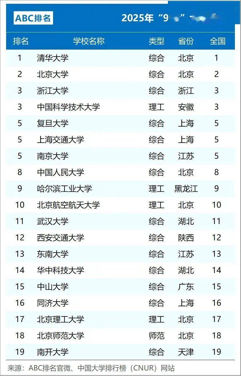 榜单中,清华大学再次荣登榜首;北京大学稳居第二;浙江大学、中国科学技术大学并列第三;复旦大学、上海交通大学、南京大学并列第五。