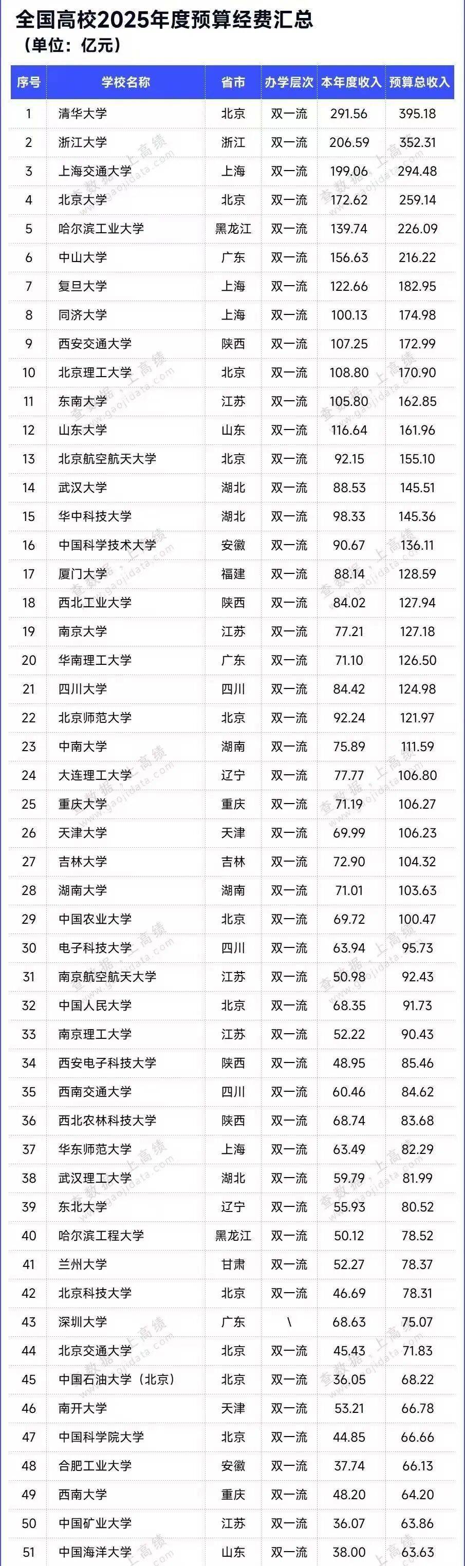 这29所大学,2025年度预算经费不仅位列985队伍前29名,更位列全国前29名。