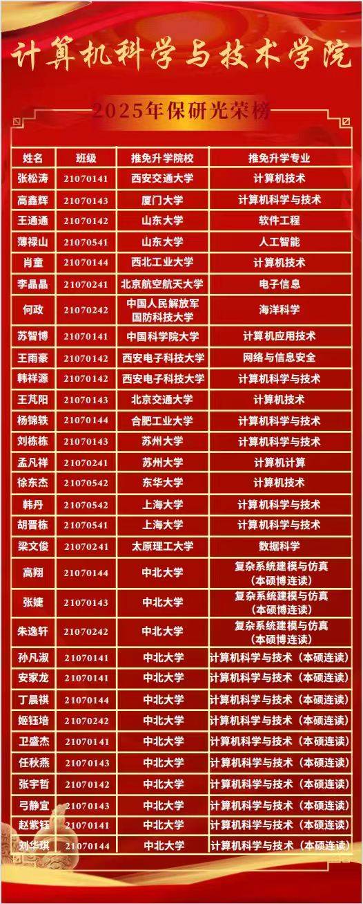 兵工七子之一的中北大学发布了计算机科学与技术2025年的推免去向。中北大学目前理科分数线并不高,伟德国际1946计算机第五轮学科评估也不高为C+,但这并不影响其毕业生的保研去向,并且拿着并不算很高的分,伟德国际1946毕业后能有如此好的升学去向,可见中北大学性价比很高!