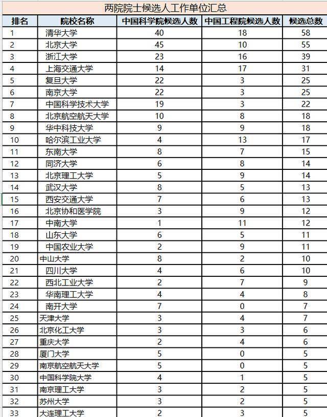 不过从这个名单,我们也可以看出各高校的实力。因为这些人虽然大部分被淘汰,但从学术水平和学术声望来说,是够得上院士水平的。