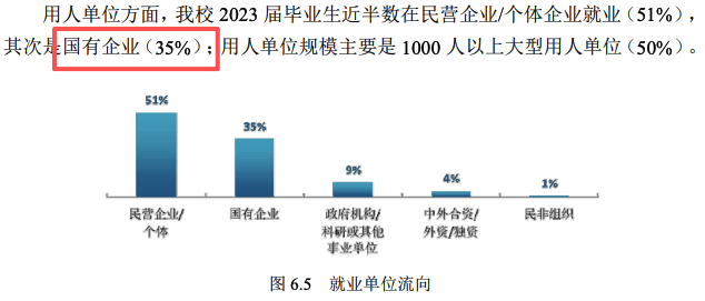 具体来看,学校最新的就业数据显示,2024届毕业生有54.5%都能进入国有企业就业!