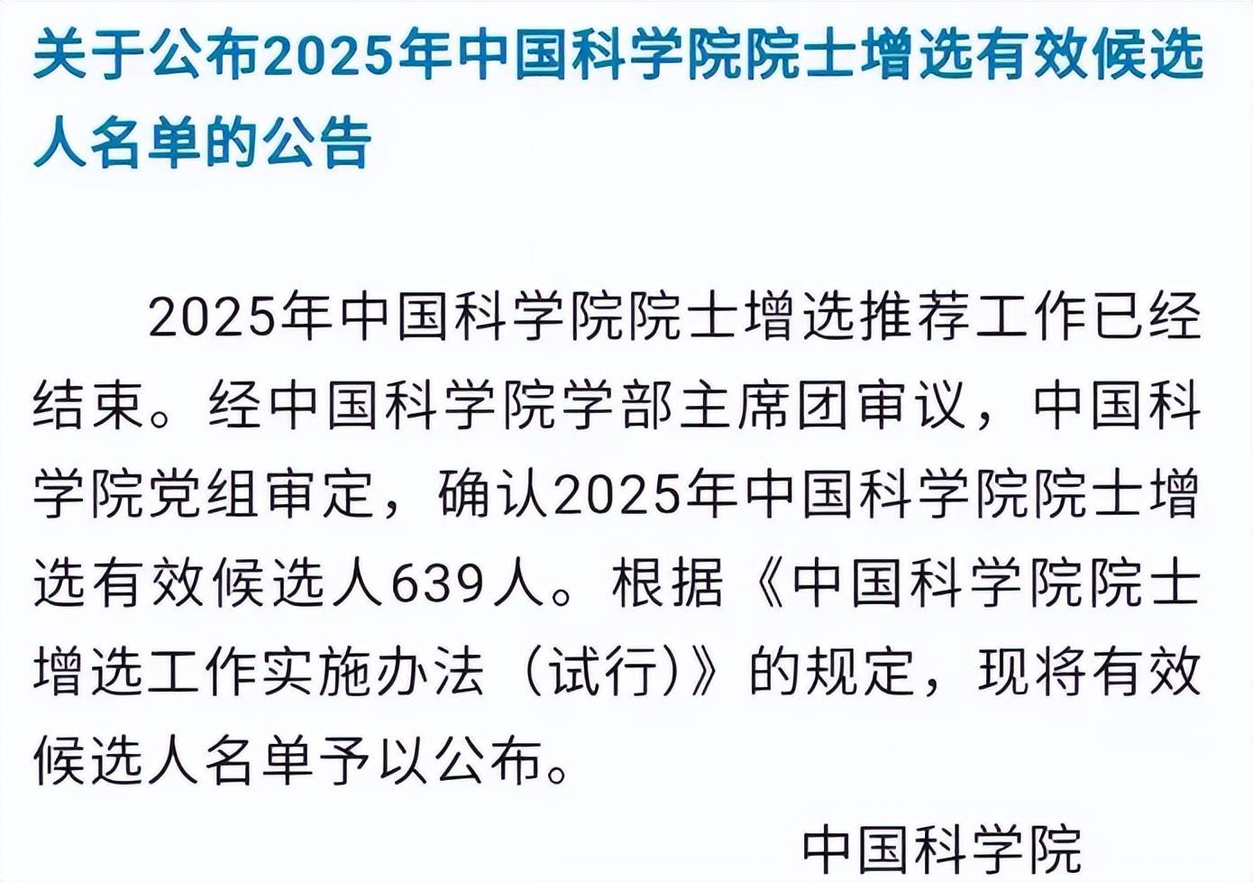 本次中国科学院共推选出639位有效候选人,中国工程院则有660位,他们将共同竞争约100个院士名额,竞争可谓相当激烈。