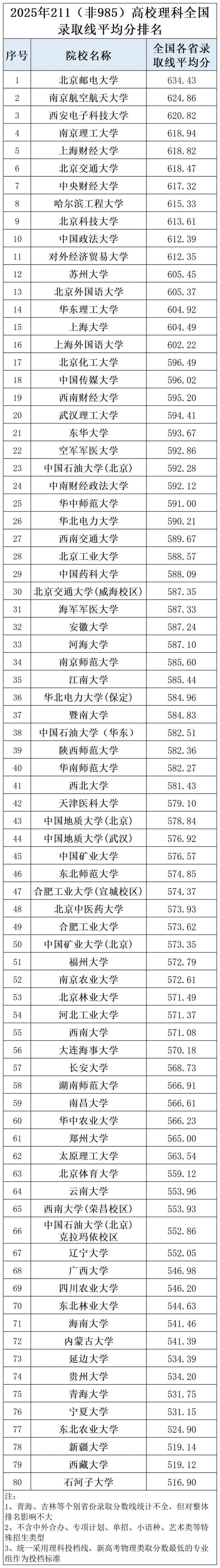 而在211(非985)院校中,北京邮电大学可谓异军突起,以634.43的平均录取分稳居榜首,甚至高出第二名近10分。这个分数即便放在985序列也能排到中游,其实力堪称纯211高校里的“绝对王者”。