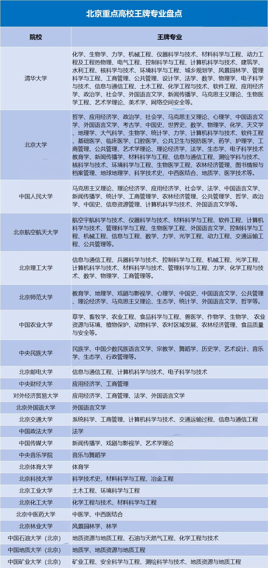 ⏩211高校(26所):除上述8所985高校外,还有北京邮电大学、中央财经大学、对外经济贸易大学、中国政法大学、北京外国语大学、北京交通大学、北京科技大学、中国传媒大学、北京工业大学、华北电力大学、北京化工大学、中央音乐学院、北京林业大学、北京中医药大学、中国矿业大学(北京)、中国石油大学(北京)、中国地质大学(北京)、北京体育大学 。北京作为首都,汇聚了丰富的教育资源,众多顶尖高校为国家培养了大量优秀人才。