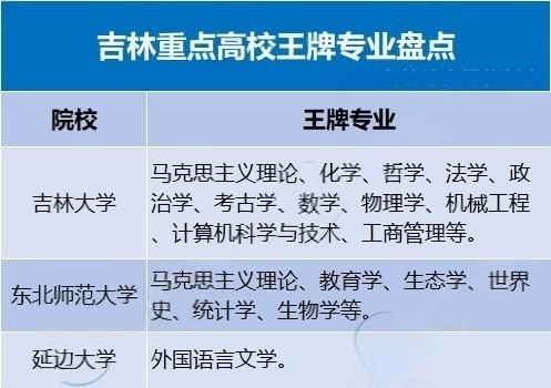 ⏩211高校(3所):吉林大学、东北师范大学、延边大学 。吉林大学学科门类齐全,东北师范大学在师范教育领域成果显著,延边大学则在民族教育和区域发展方面发挥重要作用。