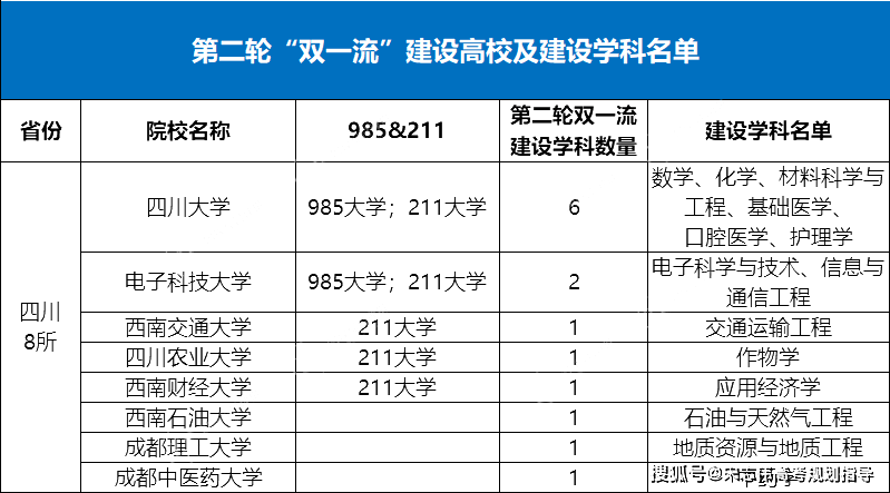 四川省8所双一流高校中有7所在成都:分别是四川大学、电子科技大学、西南交通大学、西南财经大学、西南石油大学、成都理工大学、成都中医药大学。
