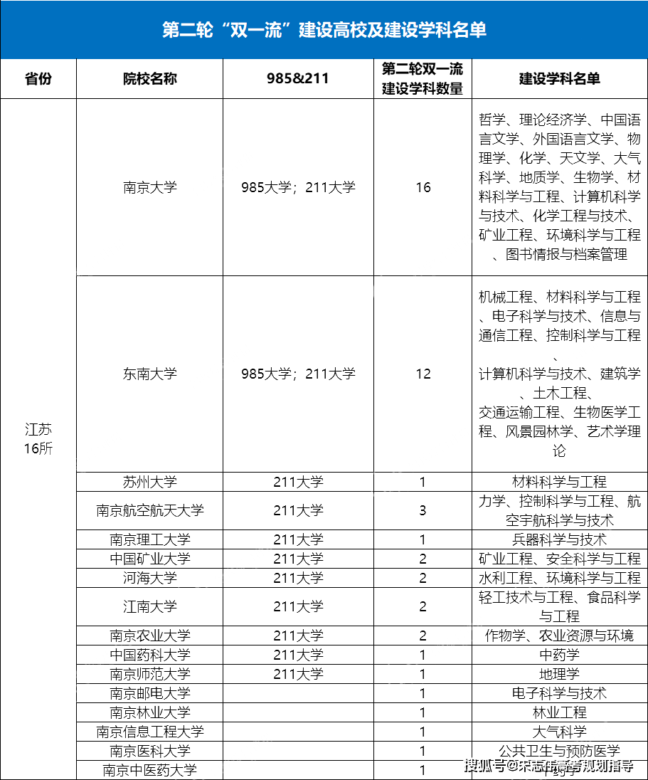 南京的大学很多,江苏省16所双一流高校中有13所在南京,分别为:南京大学、东南大学、南京航空航天大学、南京理工大学、河海大学、南京农业大学、中国药科大学、南京师范大学、南京邮电大学、南京林业大学、南京信息工程大学、南京医科大学、南京中医药大学;其中,南京大学、东南大学是“一流大学”建设高校。