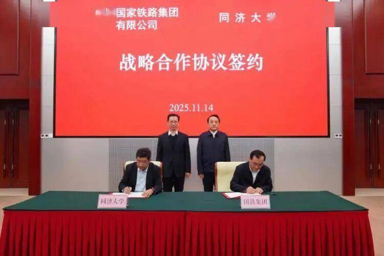 11月14日,同济大学与中国国家铁路集团有限公司(简称“国铁集团”)签署战略合作协议,双方将进一步深化合作,服务交通强国铁路先行,共同为加快实现我国铁路高水平科技自立自强贡献力量。